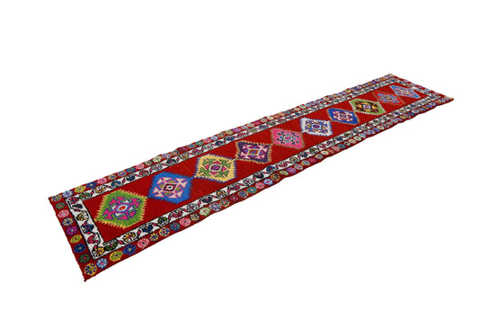 2x19 Extra Long Floor Colorful Vintage Turkish Kilim Runner Rug, Decorative Stair Hallway rug ,4733