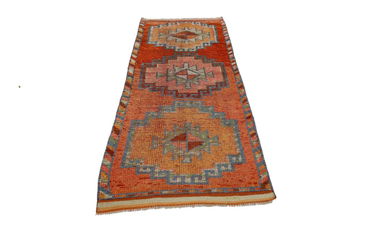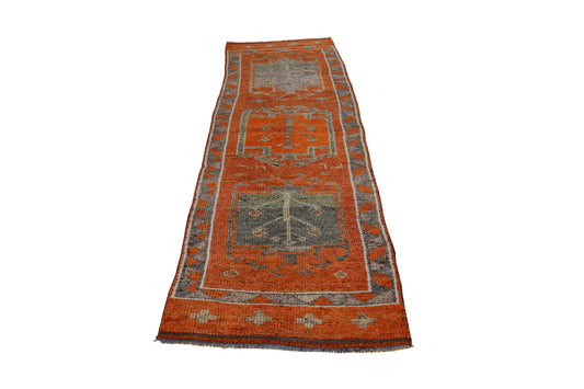 3x11 Hand knotted Vintage Runner rug, Turkish Floor runner rug, Oushak runner ,Herki runner, Entryway rug, Boho runner, Kitchen rug ,7183