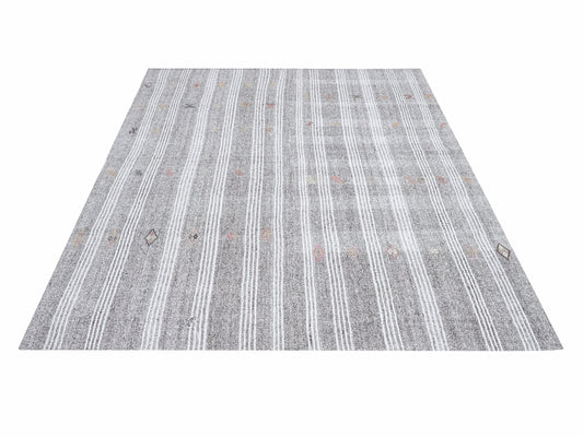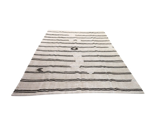 White Black Vintage Hemp rug, Turkish Kilim rug, 7x10 Kilim rug, Area Kilim rug,Handmade rug,Living room,Contemporary decor,9690