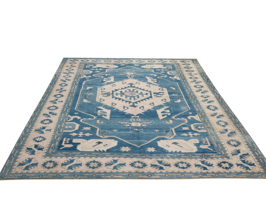 8x11 Rug, Area Rug 8x11, Turkish rug, Oushak Rug 8x11, Coastal decor, Blue, Beige, Rug, Large Turkish rug, Vintage Rug,Living room rug, 9107