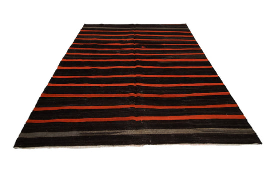 7x11 Vintage Turkish Brown Orange Area Handmade Flatweave Kilim rug, Living Room Rug, Boho Decor, 7830