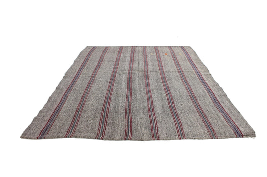 Gray Area Turkish Kilim Rug, Vintage Kilim Rug, Red Striped Goat Hair Kilim Rug 6x8, Eclectic Decor , Exclusive Rug ,Large Kilim Rug, 6264