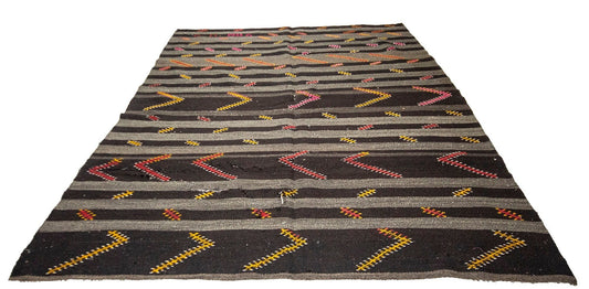 9x12 Kilim Rug, Turkish Vintage Kilim Rug, Oversize Large Natural Kilim Rug, Vintage Goat Hair Brown Flat Weave Kilim Rug, 4711