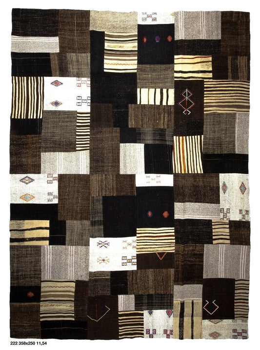 Brown Gray Patchwork Kilim rug, 10x13 Large Oversize Turkish rug, One of a kind rug, Vintage rug 10x13 ,Turkish kilim rug, 9223