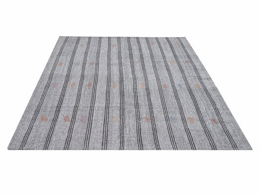 Area Kilim Rug, Turkish Kilim Rug, Vintage Kilim, Handmade Striped Kilim Rug, Scandinavian Rug, Office Rug, Gray Rug, Kilim Rug 6x8, 12184
