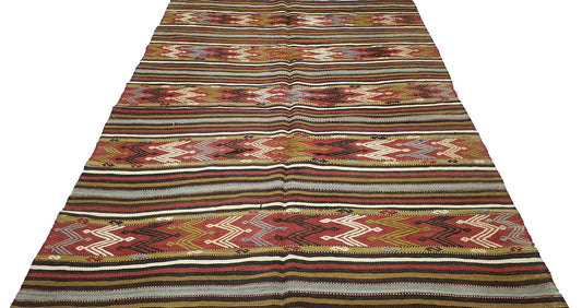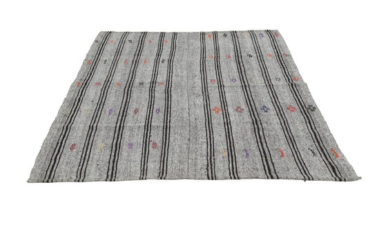 Turkish Kilim Rug, Rug Kilim, Kilim Rug 6x8, Area Kilim, Gray Striped Kilim Rug, Wool Rug, Square Kilim Rug, Unique Rug, Neutral Rug, 8098