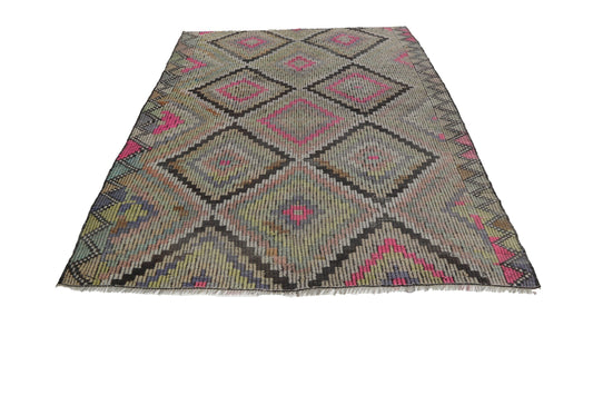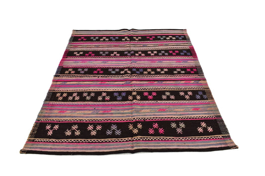 Pink Black Kilim rug, Turkish Vintage Kilim Rug 5x8, Gypsy decor, Boho Kilim rug ,Area Living room rug, Anatolia rug ,Floor Kilim Rug,3187