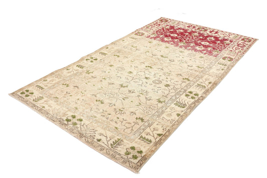5x8 Beige Red Area RUG ,Turkish Rug Handmade, Oushak Rug Wool, Livingroom Rug ,VİNTAGE RUG, Carpet Rug Floral, Bohemian Rug,4388