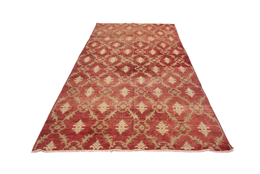 4x8 Vintage Oushak Turkish Rug, Floral Red Gold Area Handmade Carpet Rug, Bohemian rug , Living room rug, Entryway,Rug, 4048