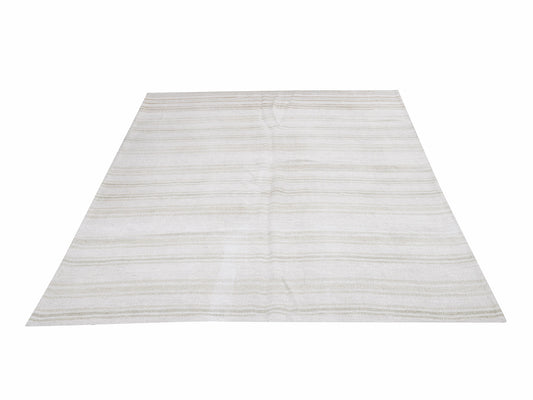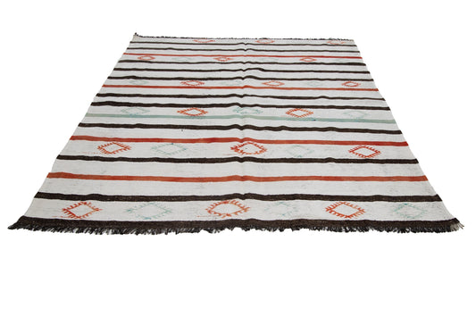 7x12 Hemp Kilim rug, Turkish kilim rug, Vintage kilim rug, Handmade ,White Striped Area rug, Entryway rug, 6709