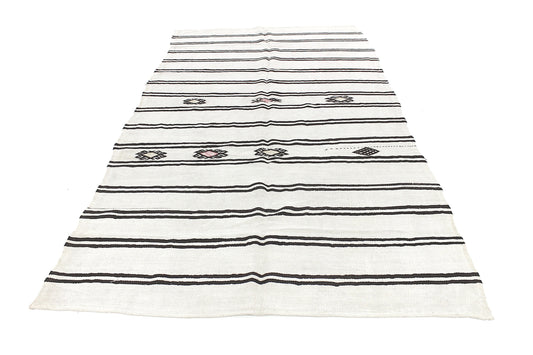 6x9 Area Kilim rug, Turkish Vintage Hemp Kilim rug,White Black Kilim rug , Bedroom rug, Minimalist decor, 9691