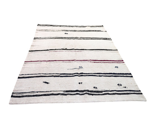 Turkish kilim, Vintage kilim, 5x7 Kilim rug, Hemp rug ,White kilim rug, Hemp kilim rug,Area rug, Black White rug, 5818