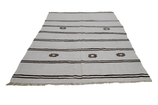 6x9 Area Kilim rug, Turkish Vintage Hemp Kilim rug,White Black Kilim rug , Bedroom rug, Minimalist decor,6283