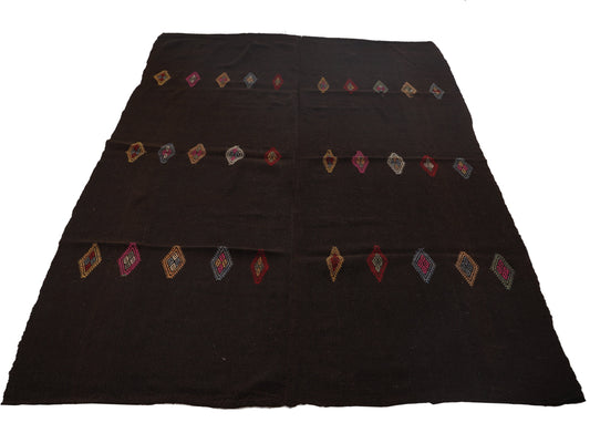 Handmade Area Kilim Rug, Turkish Antique Kilim Rug, Vintage Kilim, Bedroom Rug, Rug Kilim, Black Rug, Goat Hair Rug, Kilim Rug 7x11, 12833