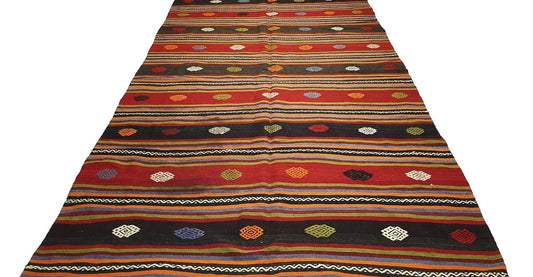 Red Brown Striped Kilim rug, Vintage kilim Rug ,Turkish kilim Rug, Handmade rug, Rustic decor, Kilim rug 6x8, Primitive Flat weave Rug, 3687