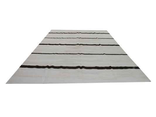 Kilim Rug 10x13, Handmade Flat Weave Kilim Rug, Area Striped Kilim Rug, Large Rug, Vintage Kilim Rug, Oversize Rug, White Hemp Rug, 9024