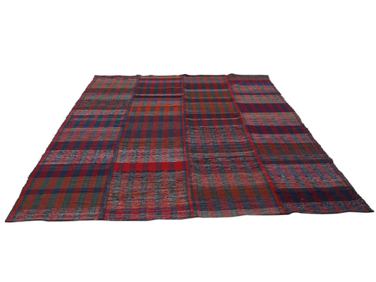 Handmade Vintage Kilim Rug, Kilim Rug 10x13, Oversize Rug, Gray Rug, Plaid Kilim Rug, Living Room Rug, Large Rug, Kilim Rug, 8244