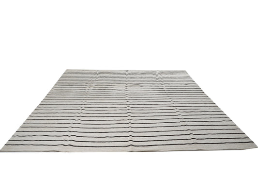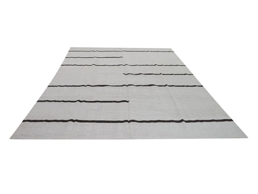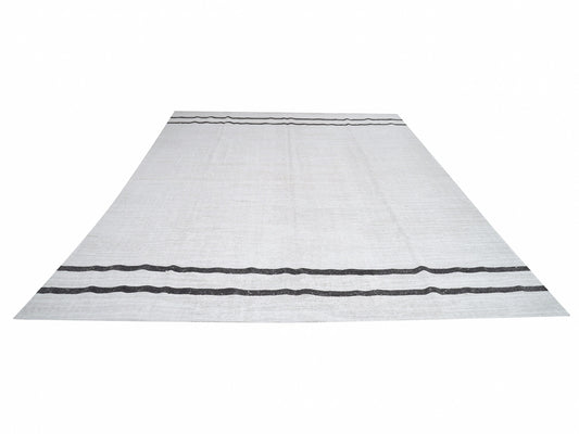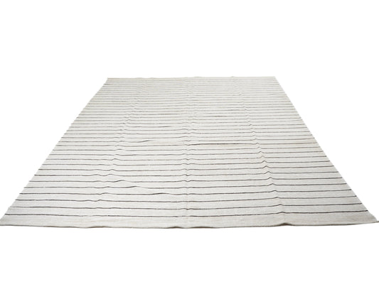 Handmade Kilim Rug, Turkish Kilim, Vintage Kilim, Area Black Striped Kilim Rug, Large White Hemp Rug, Oversize Rug, Kilim Rug 9x12, 12541