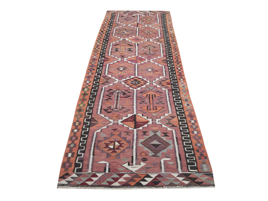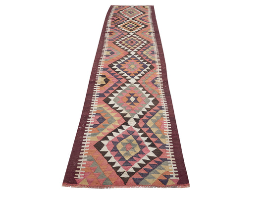 Turkish Kilim Runner Rug, Vintage Antique Runnner Rug, Oushak Eclectic Runner Rug, Bohemian Rug, Hallway Runner, Runner Rug 3x10, 11346
