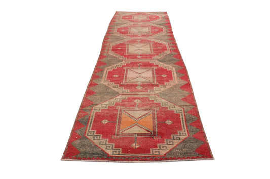 Turkish Vintage Oushak Runner Rug, 3x12 Rug Runner, Carpet Runner, Mid Century rug, Boho Rug, Shabby Chic,5955