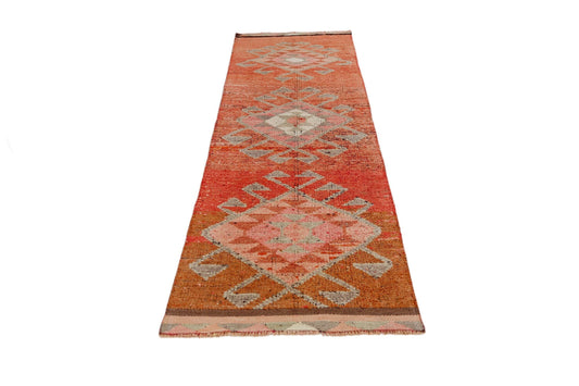 Vintage Handmade Runner Rug, Turkish Unique Runner Rug, Neutral Muted Rug, Hallway Runner, Kilim Runner, Runner Rug 3x10, Rug Runner, 12223