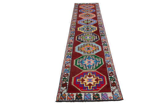 Bohemian Geometric Rainbow Runner Rug, Turkish Runner, Oushak Runner, Vintage Runner, Carpet Runner ,3x12 Rug runne, Boho rug,7787