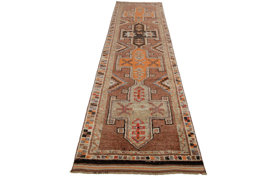 Turkish Rug Orange Beige 3x9, Hallway Kitchen Rug, Carpet Runner, Turkish Vintage Oushak Runner, Boho, 6131