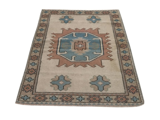 Neutral Handmade Vintage Rug , Ethnic Oushak rug , Anatolian Turkish Rug, Boho rug, Eclectic Rug, Small rug 3x5, Unique rug, Soft rug, 8655