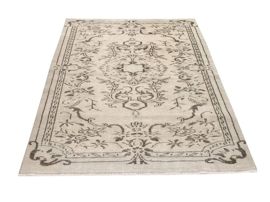 4x7 Beige Anatolia Oushak Rug, Neutral Turkish rug, Vintage Area Carpet rug, Handmade Wool Floral rug, Bedroom rug, Farmhouse decor, 9660