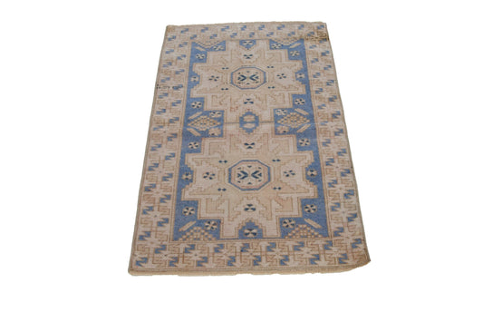 Beige Blue Turkish Small rug, 3x4 Vintage Oushak rug, Handmade Rug ,Bedroom rug, Nursery rug, Kid room rug, Coastal decor, 7476