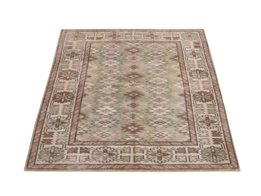 4x7 Turkish Rug, Oushak Rug Neutral, Vintage Rug Beige, Carpet Rug Geometric ,Bedroom Rug, Country Decor, 6525