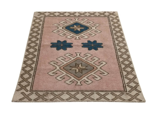 Boho Oushak Rug, Turkish Vintage Rug, Handmade Rug, Area Rug 3x5, Eclectic Decor, Living Room Rug, Bedroom Rug, Geometric Rug,9077