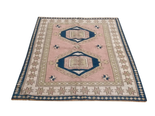 Geometric Turkish rug, Anatolia Rug, Oushak Rug, Vintage Rug, Unique rug, Wool rug, Handmade rug, Small rug 4x5, Entryway rug, 9062