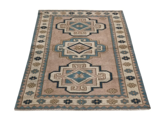 Neutral Rug, Beige Small Rug, Vintage Carpet, Turkish Carpet, Area Rug, 3x5 Rug, Faded Oushak Rug, Wool Handmade Rug, Entryway rug, 8951