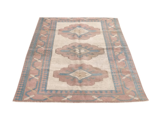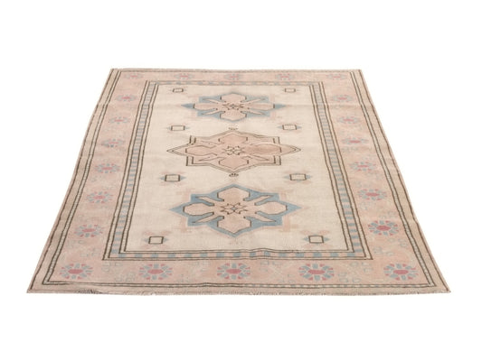 Muted Oushak Rug, Vintage Rug, Beige Rug, Area rug 4x5 , Small Carpet rug, Turkish Neutral rug, Handmade rug, Pastel rug, Oushak Carpet,9056