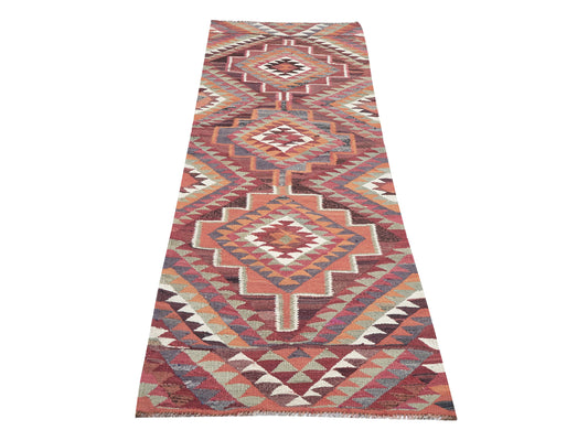 Turkish Kilim Runner Rug, Vintage Antique Runnner Rug, Oushak Eclectic Runner Rug, Bohemian Rug, Hallway Runner, Runner Rug 3x10, 11346