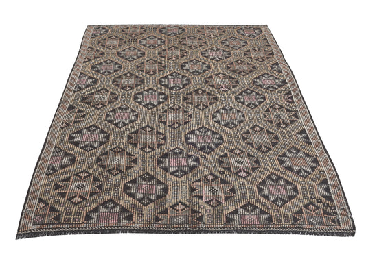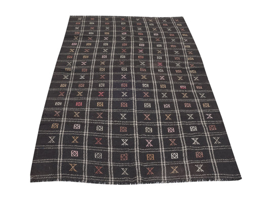 Turkish Kilim, Vintage Kilim, Kilim Rug 5x8, Handmade Rustic Black Kilim Rug, Area Old Kilim Rug, Turkish Kilim Rug, Kid Room Rug, 11166