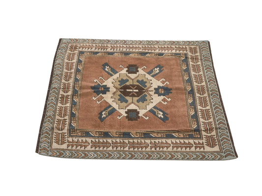 Small Vintage Rug ,Geometric Anatolia Rug ,Oushak Rug ,Small Carpet Rug ,Antique Rug ,Neutral Rug ,Handmade Rug ,Turkish Rug ,9612
