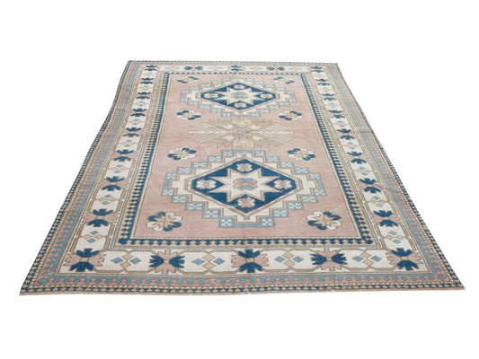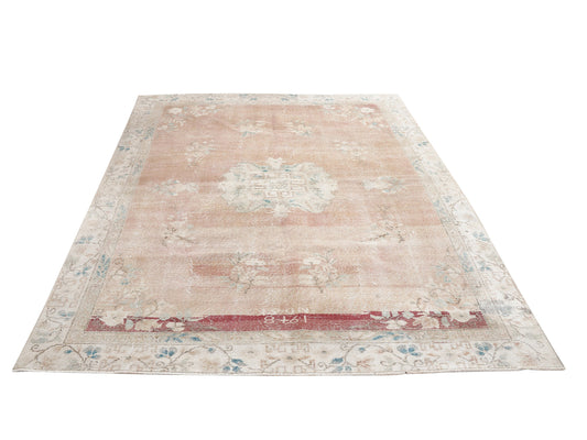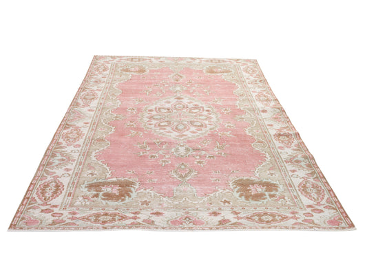 7x10 Pink rug, Turkish rug, Faded rug, Neutral Oushak rug, Vintage Area rug, Handmade Rug, One of a kind Carpet rug, Area rug 7x10, 10295