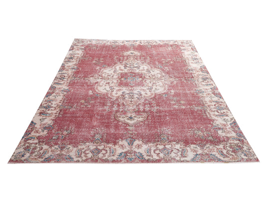 Distressed Rug, Oushak Rug, Vintage rug, Red Carpet rug, 7x9 Rug, Turkish Rug, Area rug, Floral rug, Bohemian rug, Living room rug, 10227