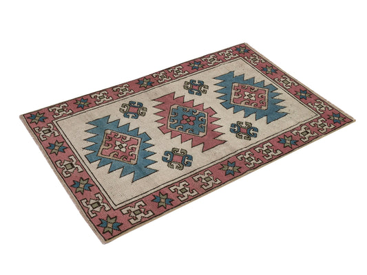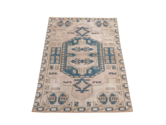 Turkish Rug, Oushak Rug, Vintage Rug, Area rug, Handmade rug, 2x4 Rug, Carpet rug, Beige Blue Small Rug, Kid room rug, Coastal decor, 10064