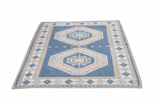 3x4 Blue Small Vintage rug, Anatolian Oushak rug, Turkey rug, Turkish Rug, Geometric rug, Old Rug, Handmade rug ,Traditional rug,8656