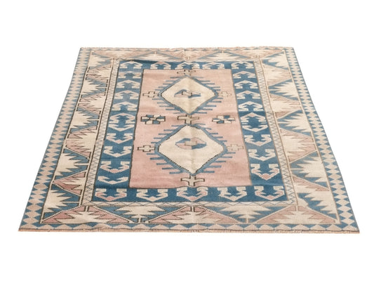 Geometric Turkish rug, Anatolia Rug, Oushak Rug, Vintage Rug, Unique rug, Wool rug, Handmade rug, Small rug 4x5, Entryway rug, 9062