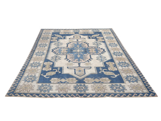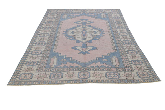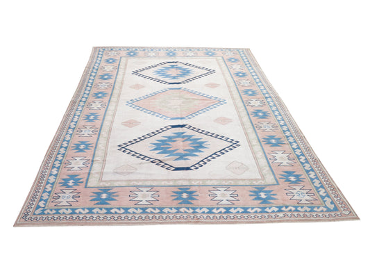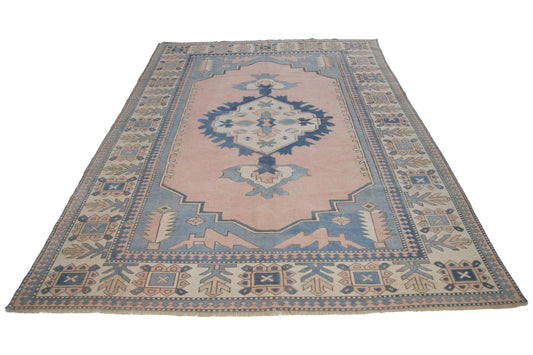 Oushak Vintage Turkish Rug, 6x10 Area rug, Beige rug 7x10, Carpet rug, Handmade rug, Geometric rug, Farmhouse decor, Anatolia rug, 9983