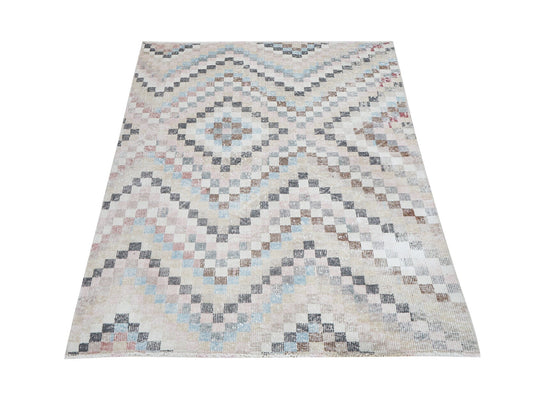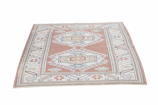 Geometric Turkish rug, Anatolia Rug, Oushak Rug, Vintage Rug, Unique rug, Wool rug, Handmade rug, Small rug 4x5, Entryway rug, 9066