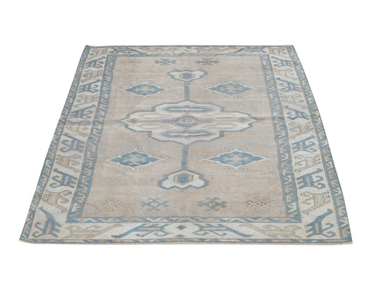 Area Rug, Rug 4x6, Vintage Rug, Handmade Rug, Turkish Rug, Oushak Rug, Scandinavian Rug, Beige Rug, Turkey Rug, Vintage Carpet, 12452