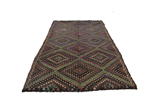 5x9 Black Vintage Turkish Carpet Rug ,Area Wool Handmade Carpet Rug, Living Room, Contemporary, Modern Rug 3153