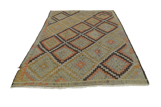 5x9 Distressed Worn Brown Kilim rug, Country decor Wool Area Rug, Rustic Area Turkish Vintage Kilim Rug, Entryway rug ,4004