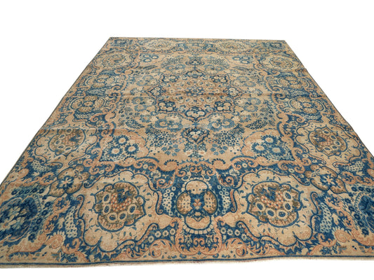 Blue Vintage Turkish Rug, 10x12 Large Oushak Area Rug, Oversize Persian Vintage Rug, Coastal Rug, Medallion Rug, Moroccon Rug, 7756