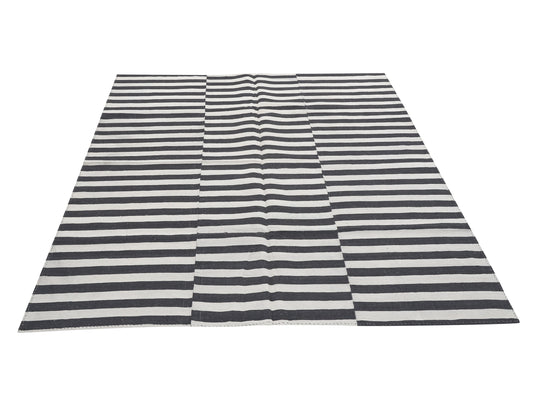 Black and White Striped Kilim Rug,Hemp Kilim Rug,Square Kilim Rug, ,Unique Rug,Organic Rug,Neutral
